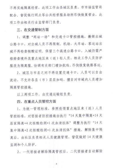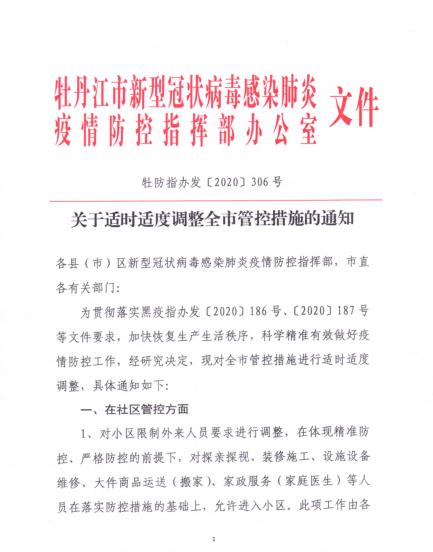 關(guān)于適時(shí)適度調(diào)整全市管控措施的通知